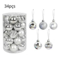 - 1. Set of 34 baubles in silver, with smooth, matte and glitter finishes.